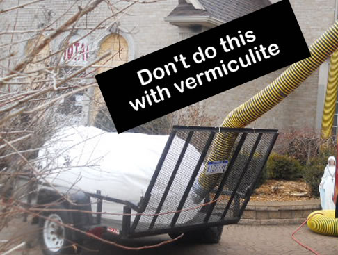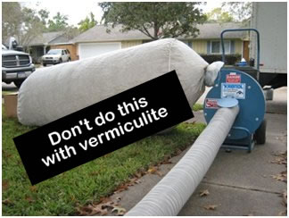 In addition, vermiculite removal work is NOT covered by contractor liability insurance. Homeowners are strongly advised to obtain a valid certificate of insurance from their chosen contractor showing proof of Pollution Liability Insurance. Any claims resulting from damage to property, health, or environment during vermiculite removal are NOT covered by contractor liability insurance.